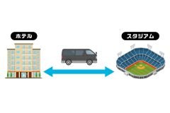 スタジアムへの送迎は、往復共に日本語ドライバーまたは、英語ドライバー+日本語ガイドがご案内します。