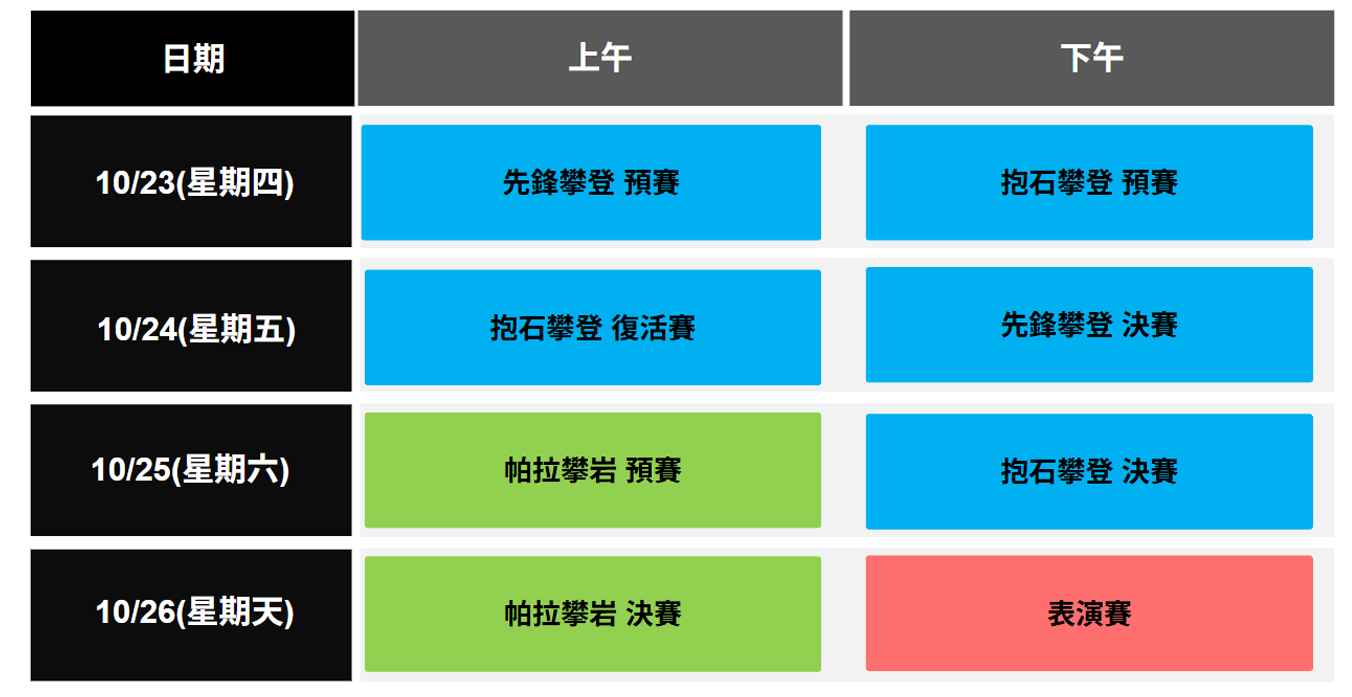 觀看 預賽(先鋒攀登/抱石攀登)方案
