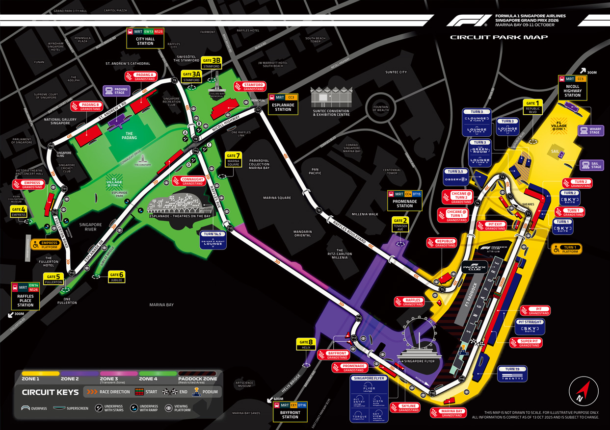 2026年度 F1シンガポールGPにおいて、HISがおススメする基本観戦スタンドです。ターン9から出てくるマシンが時速約240kmでセント・アンドリュース・ロードを駆け抜ける光景はまさに圧巻!パダンステージを含むゾーン4へのエリア入場が可能です。豪華ゲストが予定されるレース後のLiveメイン会場までもっとも好アクセスなグランドスタンドです。レースも、ライブも満喫したいアナタにおススメ!