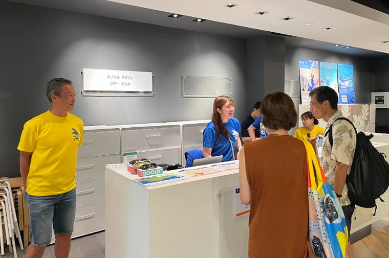 各自ゼッケンをお受け取りください。ゼッケンを受け取った後、ワイキキ(ホテル)までは巡回トロリーをご利用いただき、各自での移動となります。