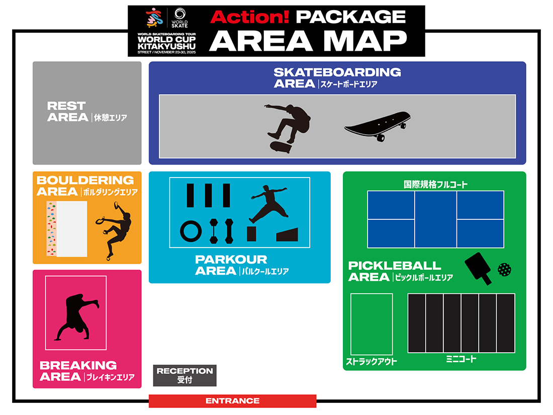 公式には非公開となる11/25-27の3日間、本プランご参加のお客様だけ競技会場内へのアクセスが可能です。また、アーバンスポーツ体験エリアでのスケートボード体験や、人気高まるスポーツクライミングやパルクール、さらに最近世界中で大ブームとなっているピックルボールなどをお楽しみいただけます。