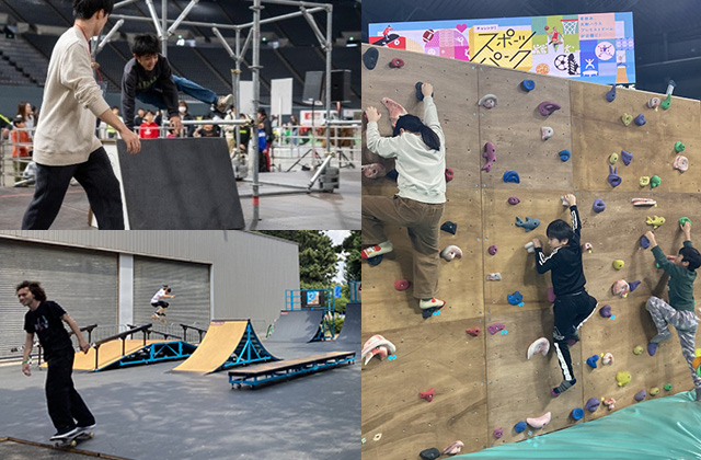 또, 어반 스포츠 체험 에리어에서의 스케이트 보드 체험이나, 인기가 높아지고있는 스포츠 클라이밍이나 파르쿠르,