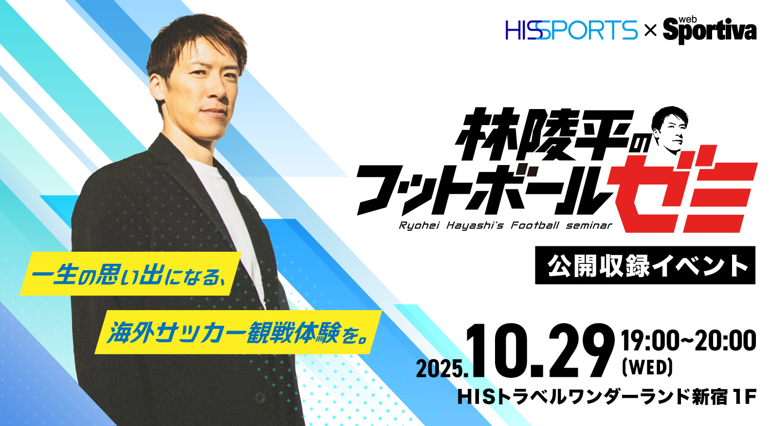YouTubeで人気の「林陵平のフットボールゼミ」が、HISトラベルワンダーランド新宿で公開収録!